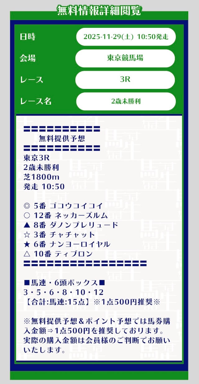 - 不的中 11月29日 東京3R