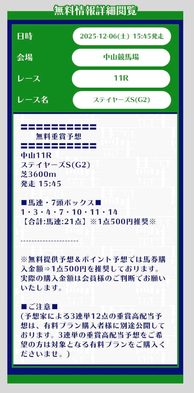 | 戦績 | 88戦69勝19敗 | 的中率 | 78.4% | 回収率 | 397.5% |