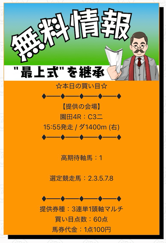 気になる方は、ぜひ無料予想からチェックしてみてください!