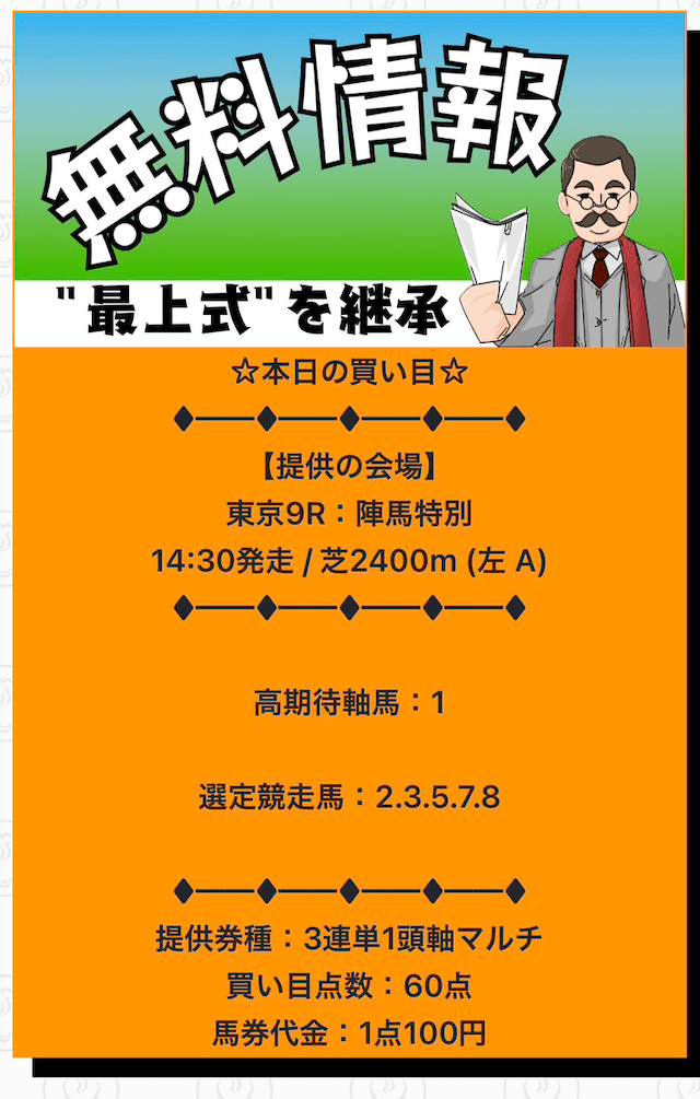 最上式勝馬投票券が最も稼いだ無料予想をご紹介!