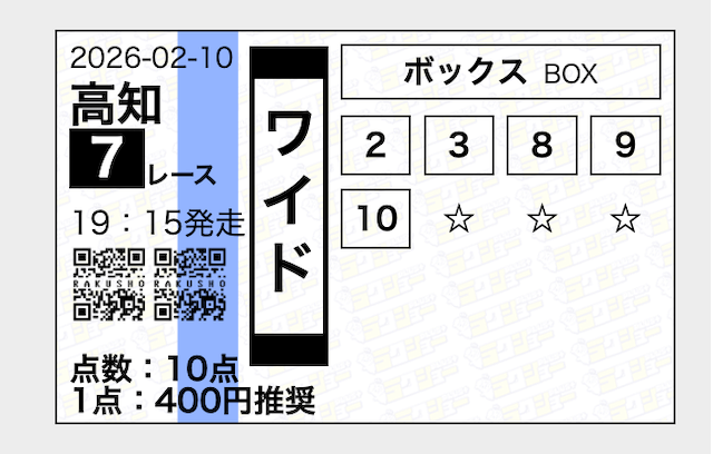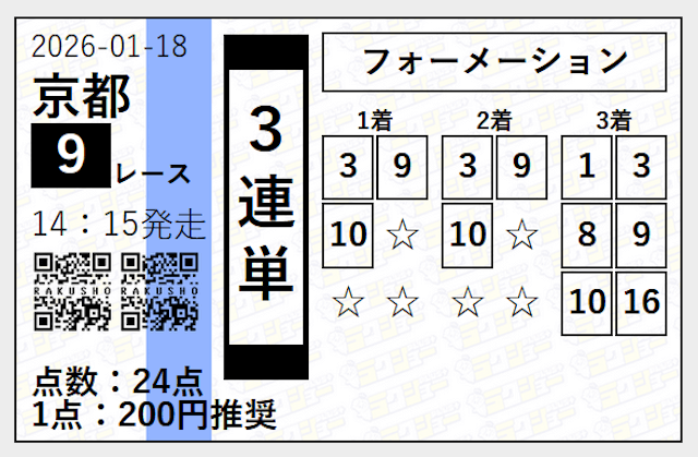 - 券種:レースにより異なる(旧ラクショー:ワイド・三連複)