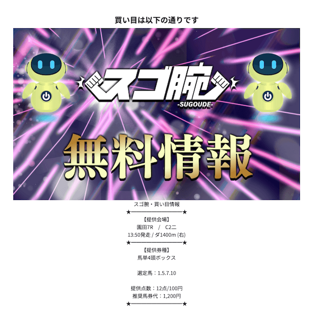 スゴ腕では上記3つを徹底することにより、精度の高い予想を提供しています。