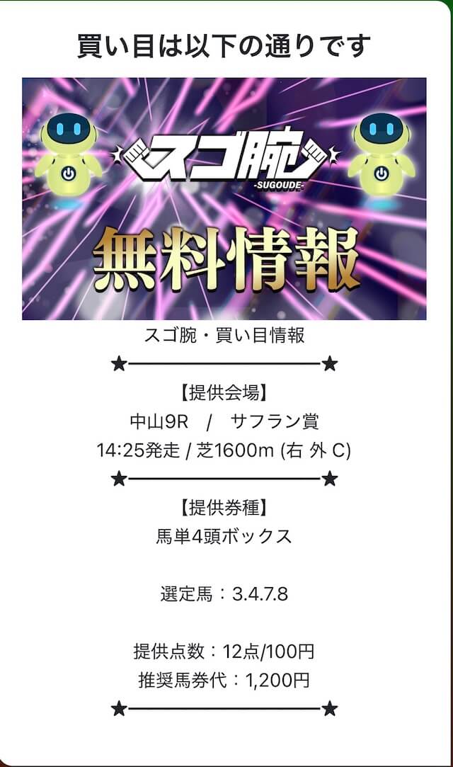 しかし、私が実際に有料予想を購入した時には、個人情報が流出したトラブルは一切なかったので、スゴ腕でクレジット決済するのは安心して大丈夫でしょう。