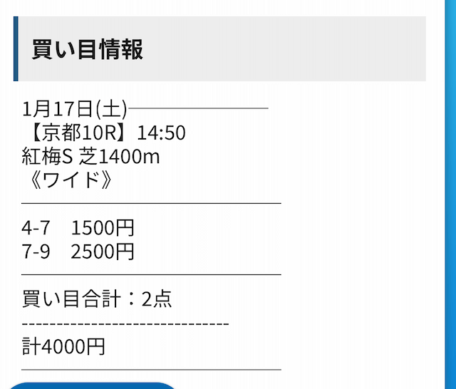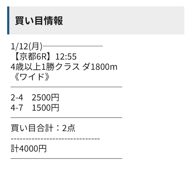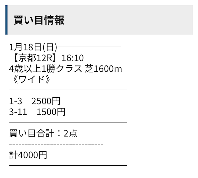 - 馬券代:4,000円