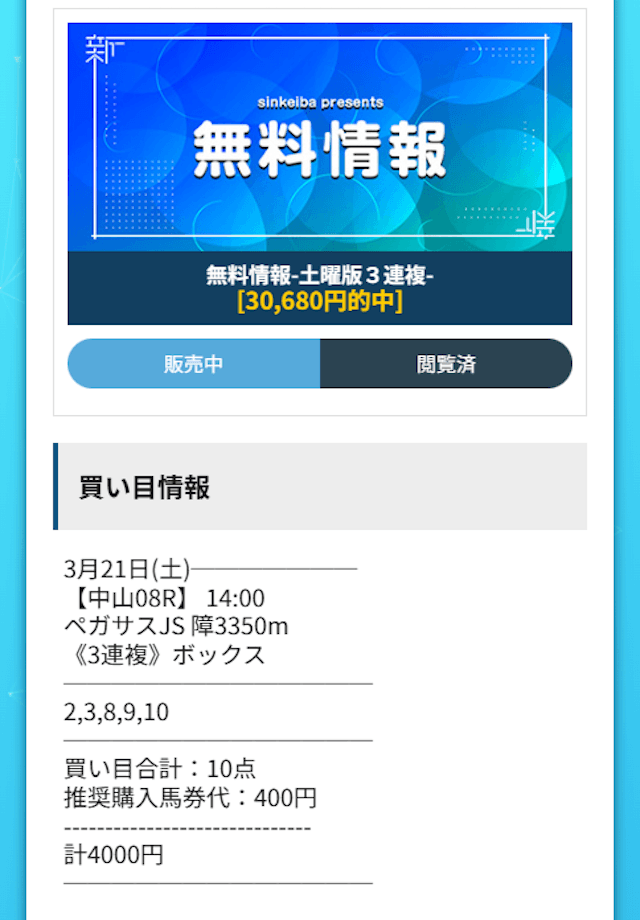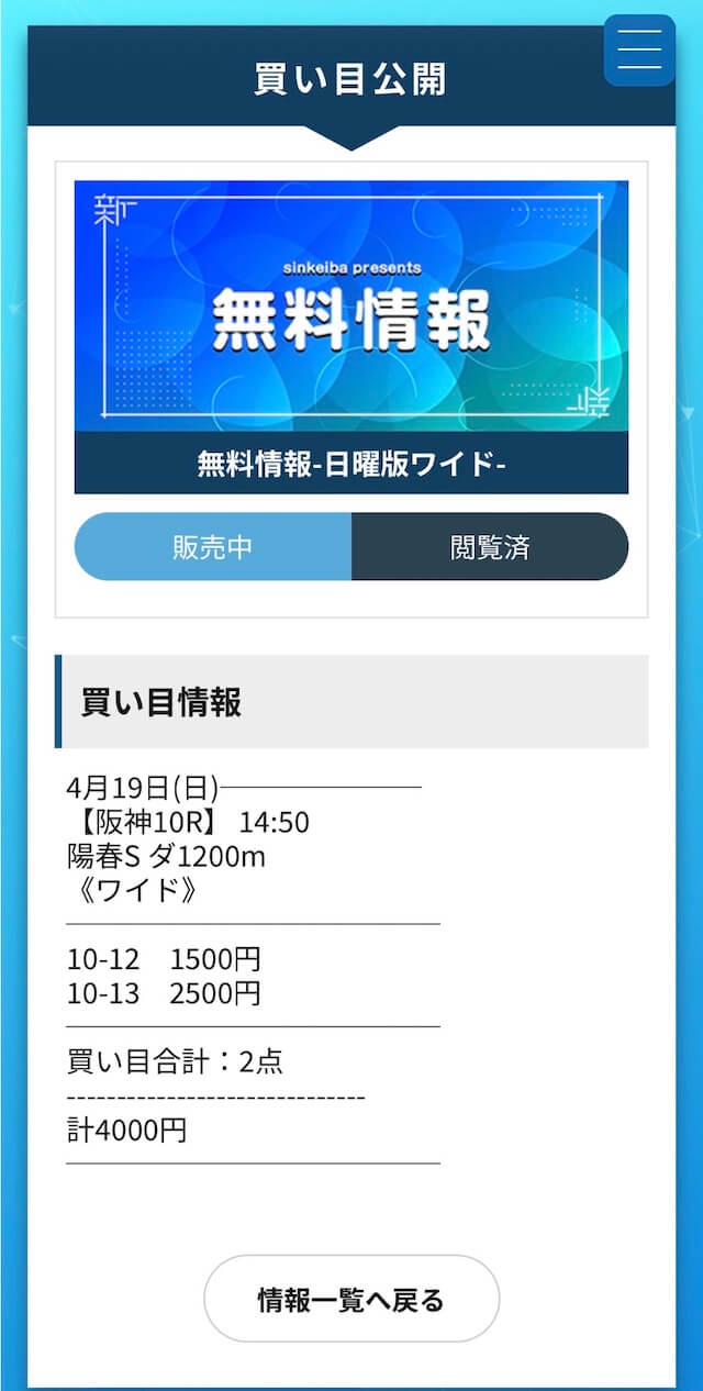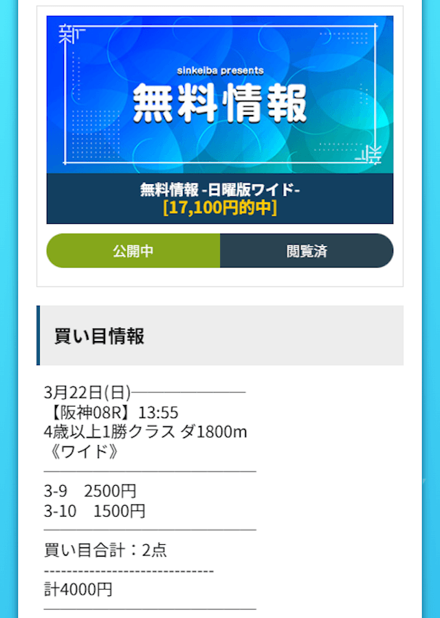 今回は、「シンケイバ」という競馬予想サイトの評価を公開します。