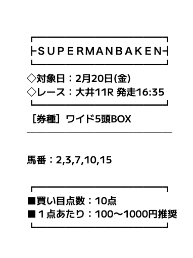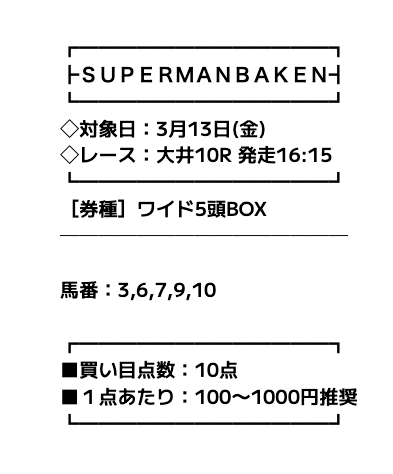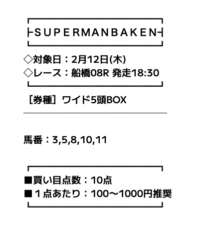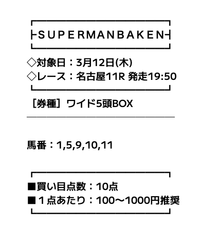 まずは、スーパーマンバケンの無料予想の詳細を簡単にまとめました。