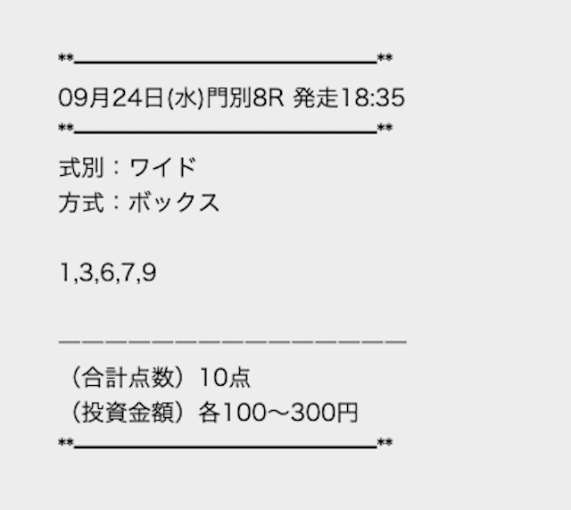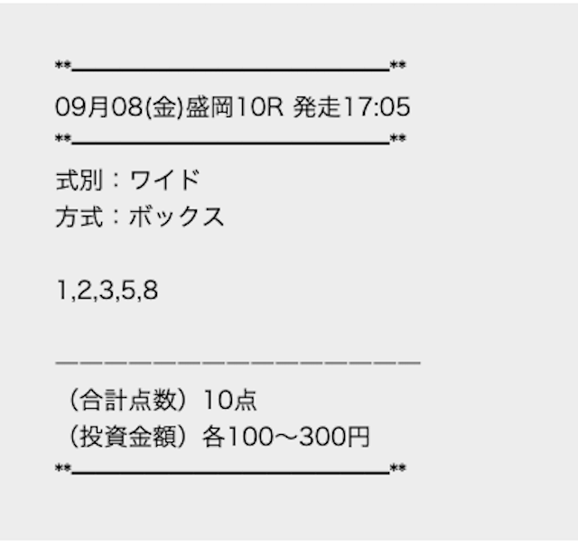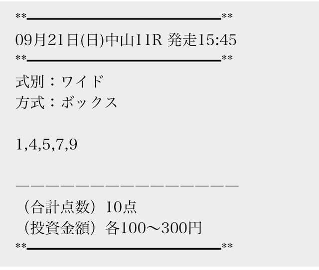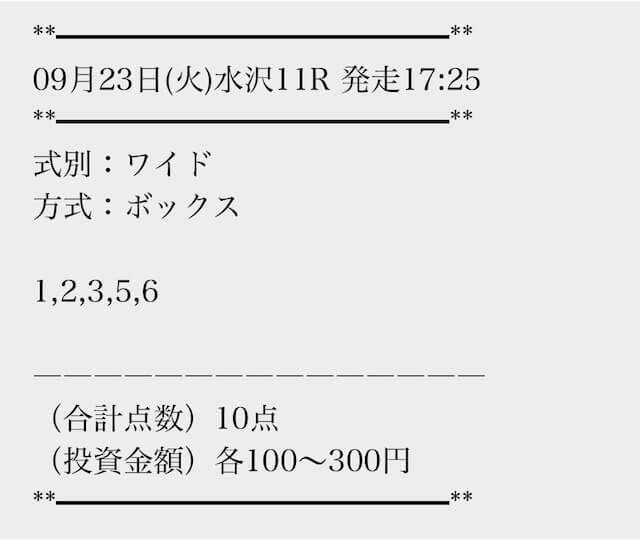 点数は10点と少ない方ですが、少頭数レースばかり予想していると的中してもトリガミ…なんてこともあるかもしれません。