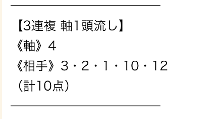 無料予想を三連複と三連単で出してるから仕方ないかもだけど、継続的に参加するなら無料予想でも軍資金はある程度必要かな。