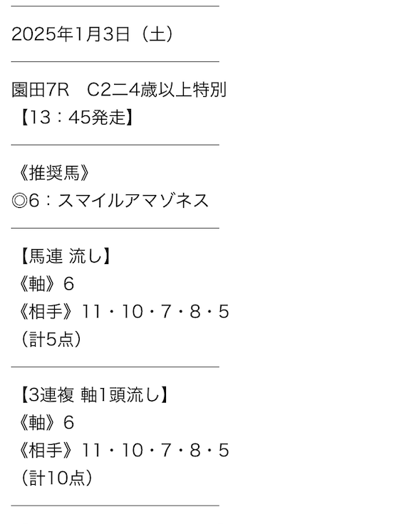 地方競馬を含めて週6回も無料予想が見れるのが最高です。