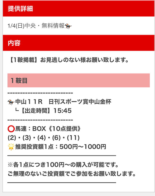 - 提供:土日各1レース
