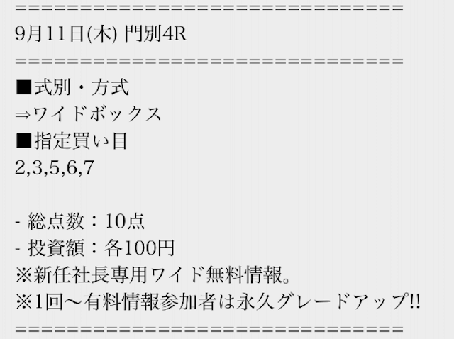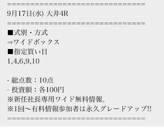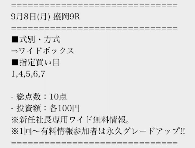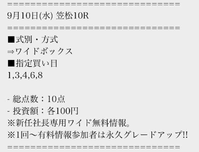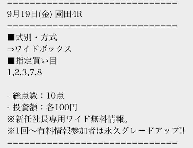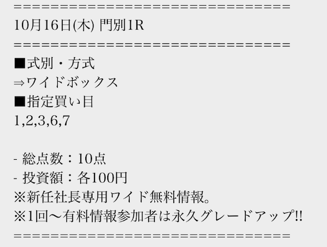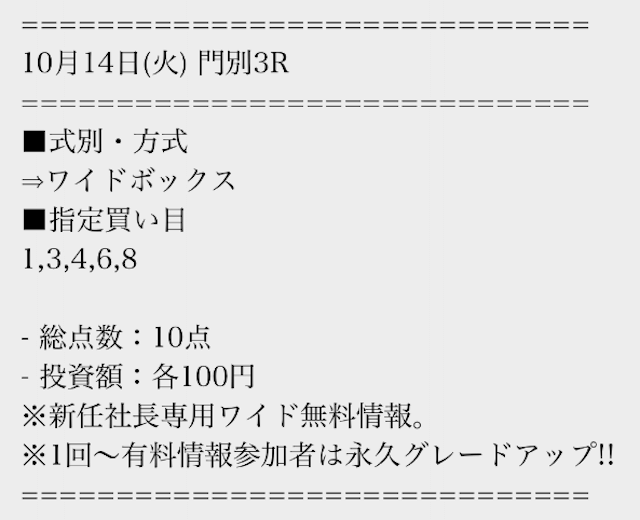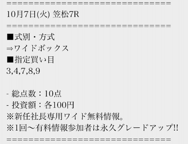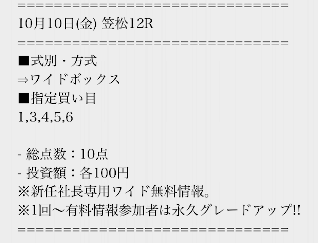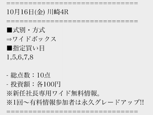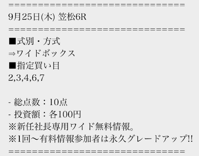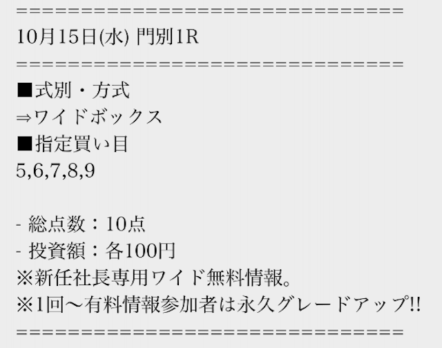 一度きりの参加でも満足できる内容でした。 - 有料予想5.0勝てました