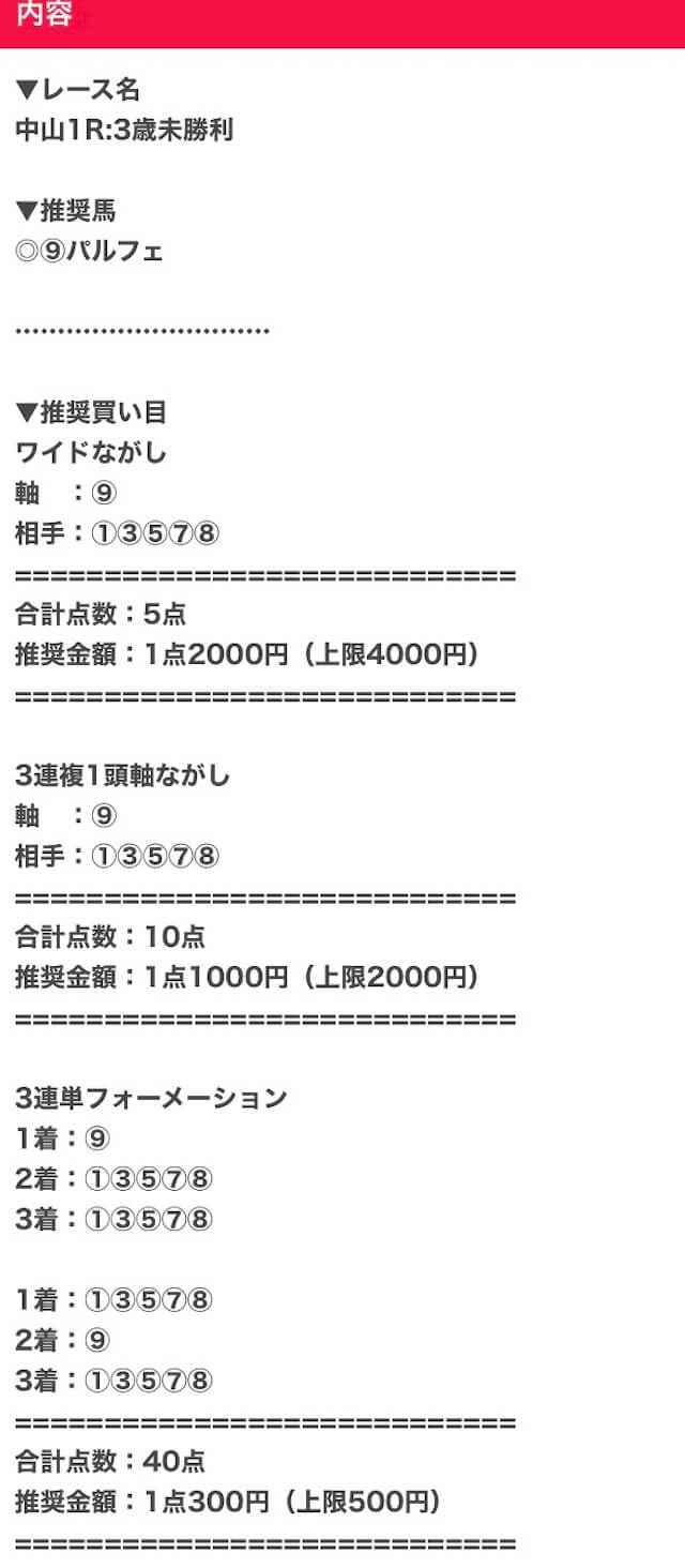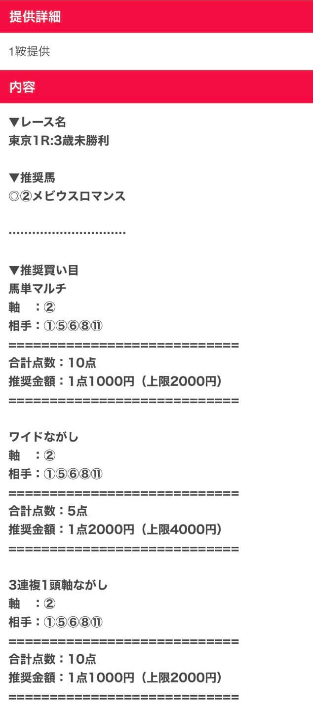 そのため、有料予想を購入する際はあらかじめプランが間違っていないか確認するようにしましょう。
