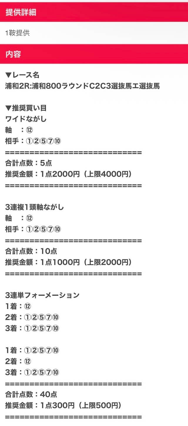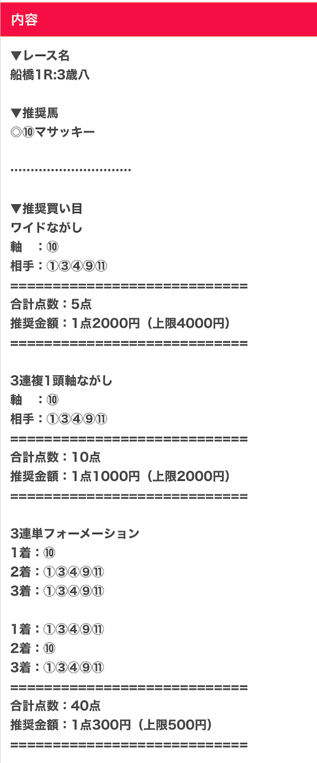 一方有料予想になると精度はグッと上がり、1レースで10万円以上の払い戻しを得ることができました。