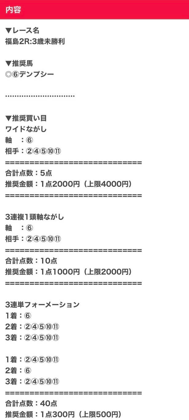 無料予想で『ワイド・馬単・3連複』の3つも買い目出してくれるのが魅力ですね。