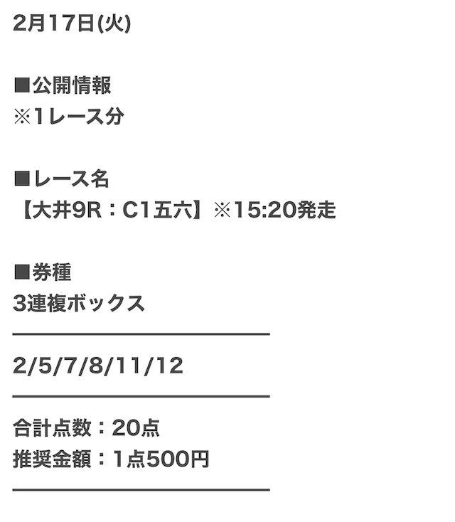 - 的中 2月17日 大井9R