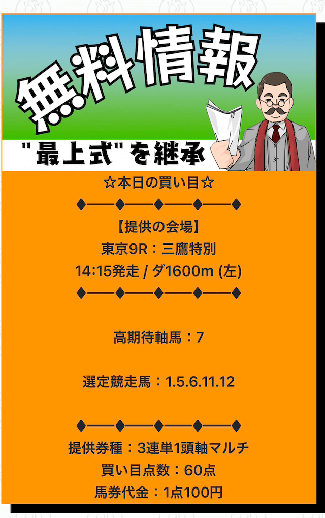 この間も3万弱の無料情報でガッツリ当たったからこことは相性良いかも