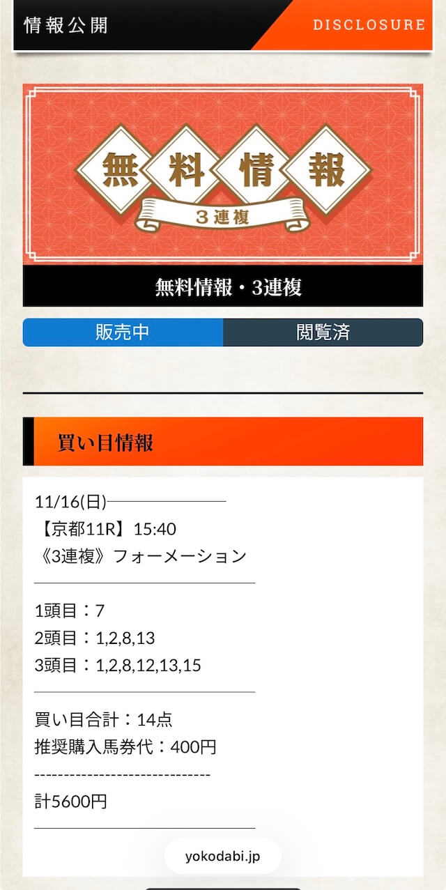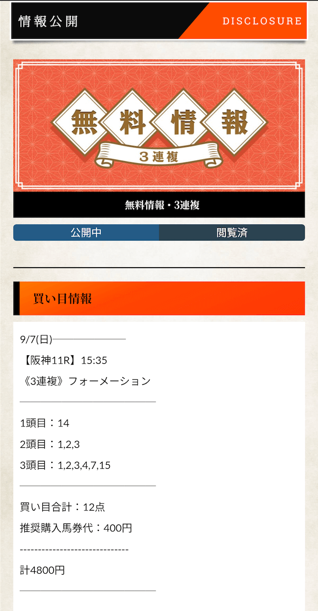 無料予想では安定感抜群でしたが、他サイトと比べるとどうなのか、気になる方は必見です!