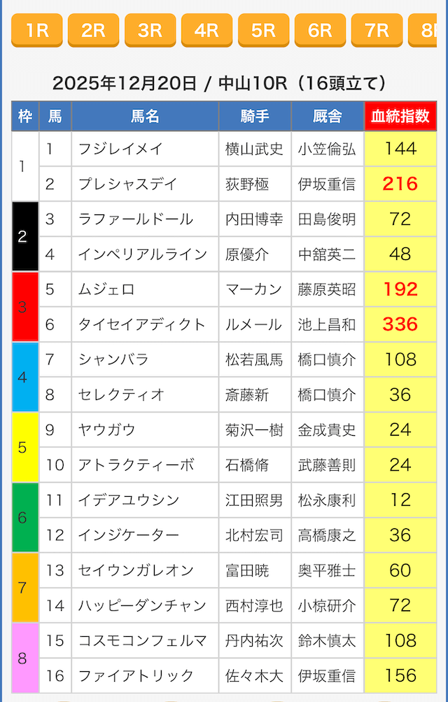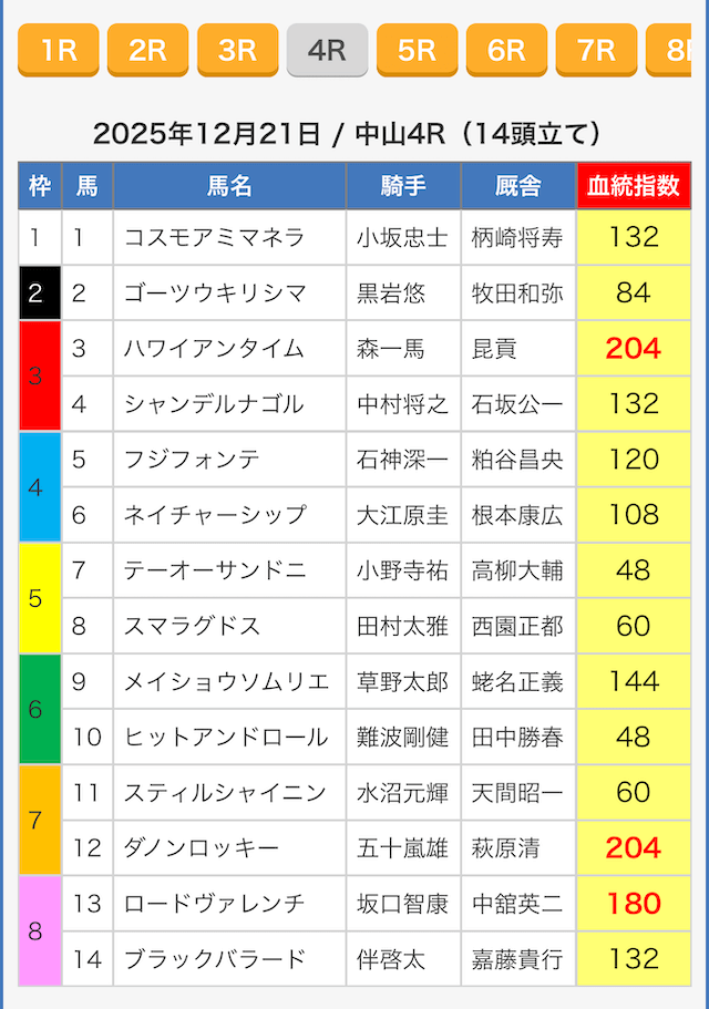 | 1位 血統指数 | えーあいネオ | ワイド |
