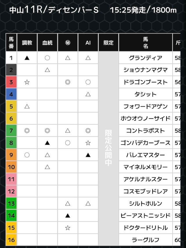 最新30件の詳細- 的中 12月21日 中山11R